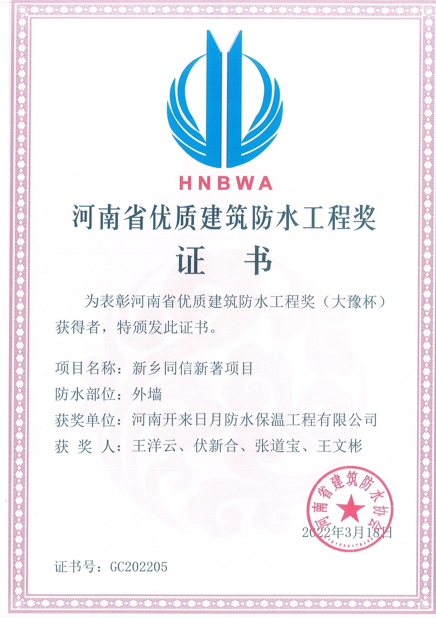 河南省優(yōu)質(zhì)建筑防水工程獎(jiǎng)