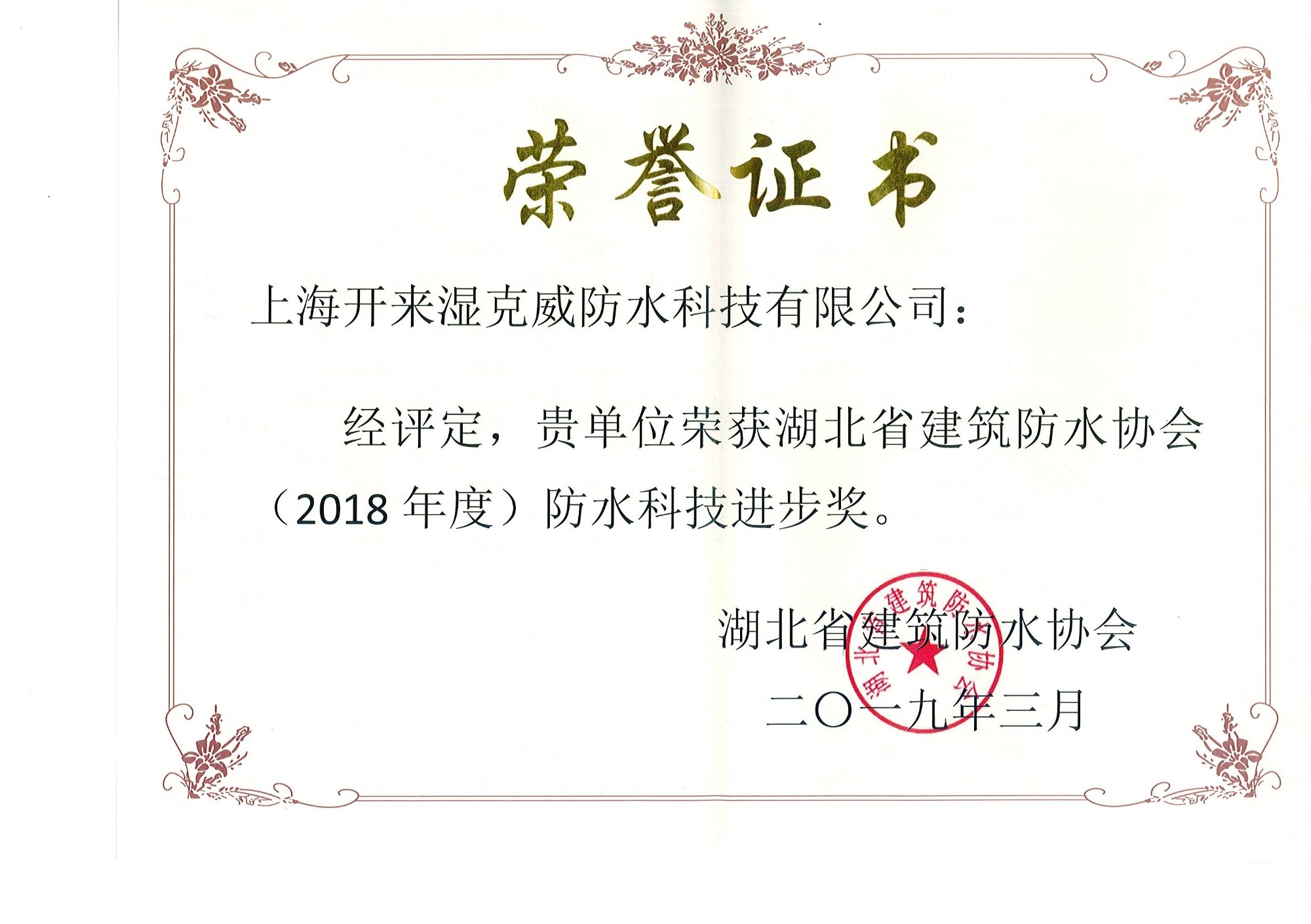 湖北防水科技進(jìn)步獎(jiǎng)